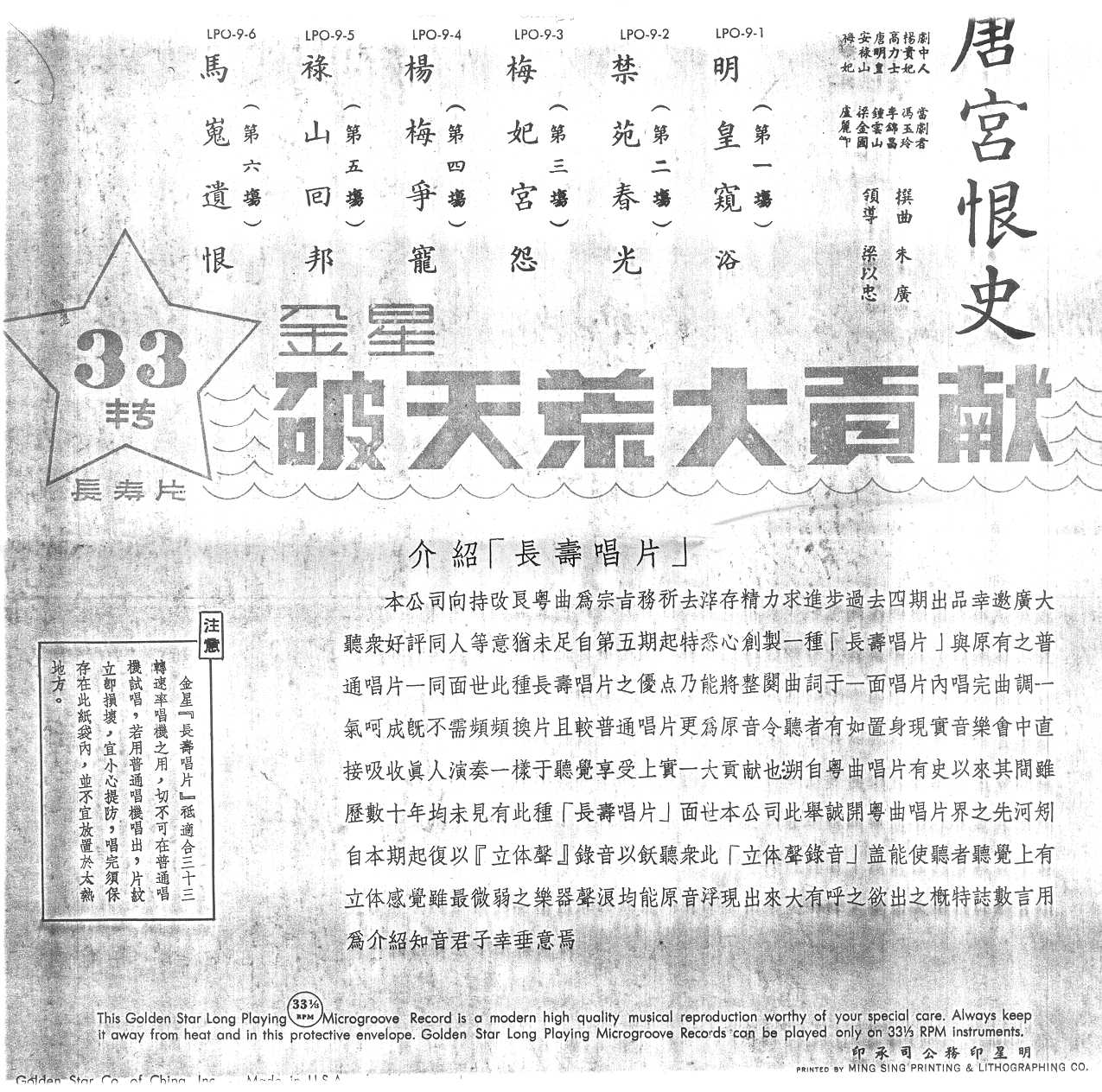 The performance is by the Hong Kong Golden Voices ensemble. The performers include Ma Yok Ling (Concubine Yang), Tsung Wan San (Emperor Ming), Lei Kam Chung (Go Lek Si), Leung Kam Ko (On Luk San) and Lo Lai (Concubine Mui). The arranger and music director is Chue Kong.
