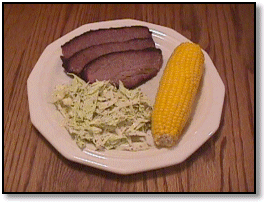 Served up with slaw and corn-on-the-cob.