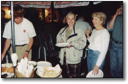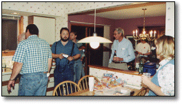 ![]() Wilber's First Birthday Party October 17, 1998 Press here for the food shots! Photographs on this page are courtesy of Roy Young. ![]() Rocky Hurley demonstrates his oyster shucking technique while Dan Gill (far left) stands his distance. ![]() "Hey! When's the food gonna be ready?", Tetley wants to know.
