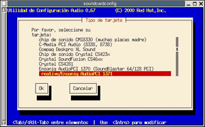 A continuación debemos abrir la aplicación para configurar la tarjeta de sonido (sndconfig) (acciones >> Configuración >> Configuración de la tarjeta de sonido). Aparecerá la ventana siguiente…