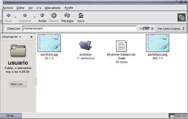 - Minimiza Nautilus (aplicación que has arrancado cuando pulsaste sobre