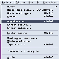 1. Guardar una página web en nuestro ordenador (disco duro o flexible) es una labor muy sencilla, basta con seleccionar en la barra de menús: Archivo >> Guardar Como. |