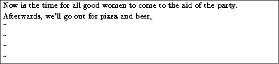 There are several ways to insert text, other than using the i command. For example, the a command inserts text beginning after the current cursor position, instead of on the current cursor position. For example, use the left arrow key to move the cursor between the words ``good'' and ``men''.