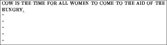 The ``~'' command changes the case of the letter under the cursor from upper- to lower-case, and vise versa, For example, if you place the cursor on the ``o'' in ``Cow'', above, and repeatedly press , you'll end up with: