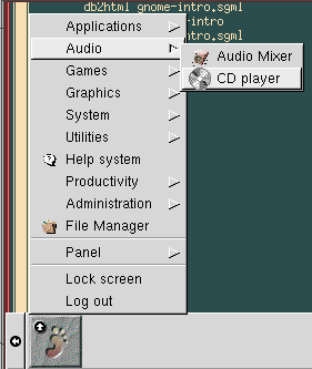 Most of the entries in the panel menu are submenus; Figure 2-5 shows an example of running the CD player from the Audio submenu.
