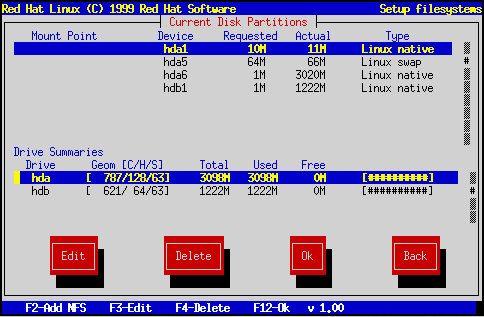 de su sistema de ficheros de Red Hat Linux. Las particiones que asigne