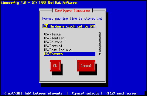 Si se desea cambiar la configuración de la zona horaria después de haber iniciado su sistema Red Hat Linux, puede utilizar el comando /usr/sbin/timeconfig.
