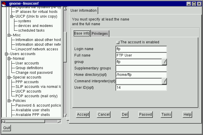 - Si tienes más de 15 cuentas en el sistema, Linuxconf te proporcionará