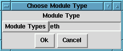 Para agregar un módulo de cualquier tipo, pulsa sobre el botón Add. Se te presentará una ventana de diálogo (figura fig:kerneld-add) pidiendo que elijas un tipo de módulo. El de Ethernet es eth, el de Token Ring es tr, los controladores SCSI son scsi_hostadapter, y así con todo. Pulsa sobre Ok para continuar con la siguietne ventana de diálogo.