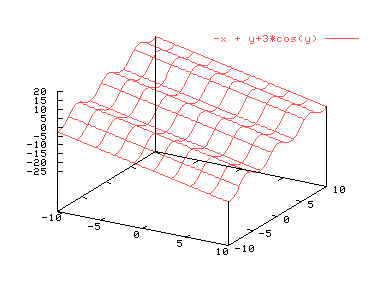 Por ejemplo, para representar -x+y+3*cos(y), deberíamos escribir