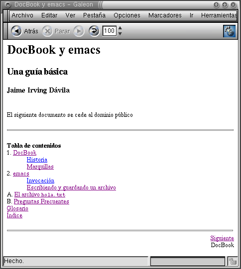 Si usamos el comando make multiple-html, y luego usamos galeon para vizualizar el html tendremos que luce de la siguiente forma.