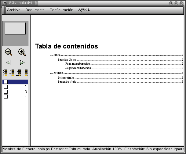 Nuestra idea es crear un pequeño libro con dos capítulos y varias secciones, subsecciones, párrafos entre ellos; para introducir una sección dentro de un capítulo la marquilla de utilidad será sect1, en caso de querer hacer una subsección dentro de ésta basta usar sect2 y así sucesivamente.