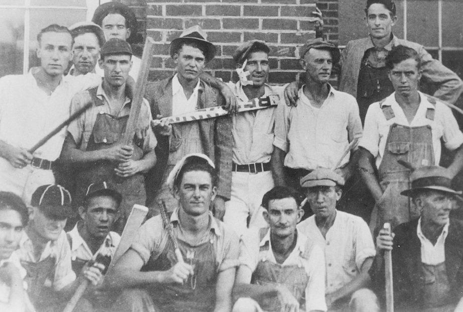 Striking workers fresh from a confrontation with the police outside the Trion Cotton Mill in Trion, Georgia, 1934. A deputy sheriff and union loyalist were killed in the clash. After the fight the pickets re-formed their lines and closed the mill. For a larger high resolution version of this
