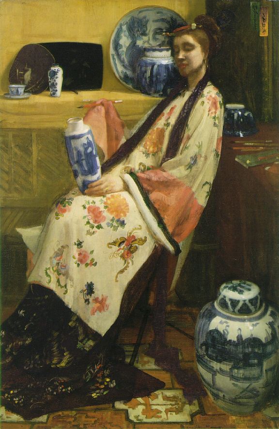 Whistler's art is in many respects the opposite to his often aggressive personality, being discreet and subtle, but the creed that lay behind it was radical. He believed that painting should exist for its own sake, not to convey literary or moral ideas, and he often gave his pictures musical titles to suggest an analogy with the abstract art of music: `Art should be independent of all claptrap-- should stand alone, and appeal to the artistic sense of eye or ear, without confounding this with emotions entirely foreign to it, as devotion, pity, love, patriotism, and the like. All these have no kind of concern with it, and that is why I insist on calling my works "arrangements" and "harmonies".' He was a laborious and self-critical worker, but this is belied by the flawless harmonies of tone and color he created in his paintings, which are mainly portraits and landscapes, particularly scenes of the Thames. No less original was his work as a decorative artist, notably in the Peacock Room (1876-77) for the London home of the Liverpool shipping magnate Frederick Leyland (now reconstructed in the Freer Gallery, Washington), where attenuated decorative patterning anticipated much in the Art Nouveau style of the 1890s. Whistler's Peacock Room, or Harmony in Blue and Gold (1876-1877, Freer Gallery of Art), done for Leyland, exerted a strong influence on the Aesthetic movement's interior design.