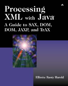 Sun's posted the proposed final draft (version 0.9.0) of the Java Architecture for XML Binding 1.0 (JAXB) on the Java Developer Connection (registration required). This includes a spec, API docs, and a reference implementation. JAXB compiles an XML schema into one or more Java classes. (First mistake: JAXB assume there's a schema. Second mistake: It assumes the schema is written in the W3C XML Schema Language. Third mistake: It assumes documents actually adhere to the schema.) JAXB can unmarshal schema-valid XML into Java objects; read, update and validate the Java objects against the schema, and write the result back out as XML.