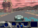 The graphics for the tracks are amazingly detailed. An example is the first track called Newsan (the futuristic San Francisco). You are able to see the buildings speeding by as well as the bridges when your car passes underneath them. On another scene, there are huge satellite dishes which slowly rotate as you are speeding pass. The actual car graphics are a little less detailed but do not detract from the overall effect of the game very much.