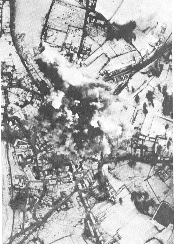 England-based bombers also aided the Russian armies by a series of great strikes against German cities where rail yards were gorged with trains carrying troops to the front and evacuating refugees from the east. Berlin, Leipzig, Dresden, and other cities were hit by mighty formations in attacks which, especially in the case of Dresden, drew the sort of criticism which the AAF had long feared. By this time, however, USSTAF even experimented briefly with the idea of sending out radar-controlled war-weary B-17's filled with explosives. With 80 per cent of the very heavy bomb tonnage in February dropped by radar, precision bombing was no longer the shibboleth it had once been and the accidental bombing of Schaffhausen in Switzerland was a symbol of the fury of the air war in the desperate effort to knock out Germany. The CLARION operation of 22 February, in preparation for a great ground offensive, was a moderately successful variation of the sort of wide-ranging attack, advocated during the previous autumn, which would bring the war home to towns and villages previously undisturbed.