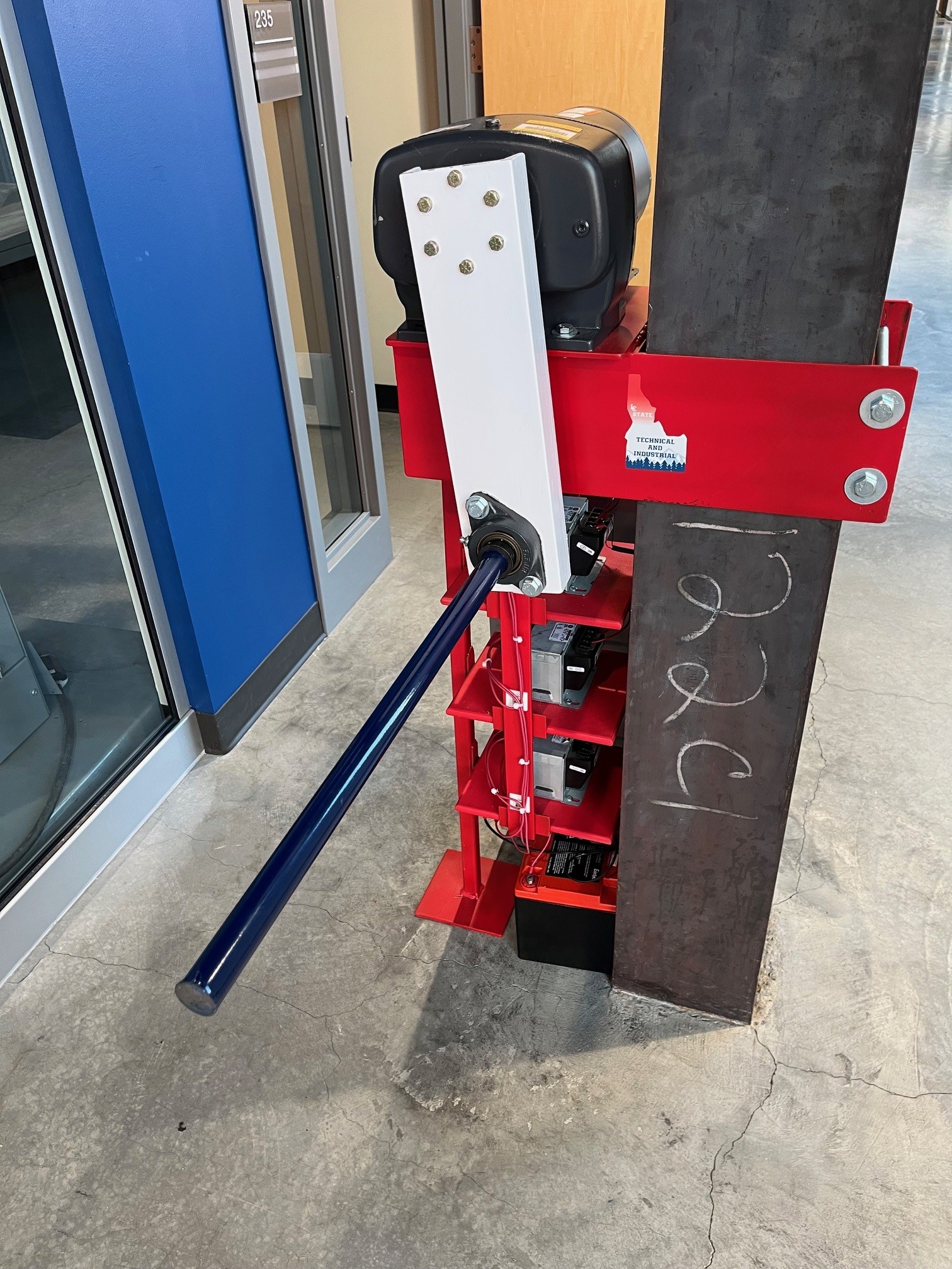 Every student builds a ``Development Board'' in their first project course, which is a platform for future projects and experiments. It consists of a perforated 16" by 20" steel subpanel (intended as the subpanel for an electrical enclosure) supported by four furniture coasters and holding two DIN rails for mounting terminal blocks. Also located on the Development Board is a step-down power transformer and rectifier assembly for converting 120 VAC line power to safe, low-voltage DC for powering other circuits. This particular board also contains a PCB with an adjustable voltage regulator circuit.