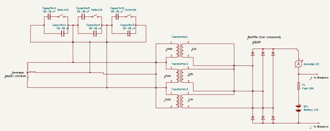 - Station Power battery charger for the miniature power grid system (voltage- and current-limited charging circuit for two 6-Volt batteries in series, plus a ground fault indicator)
