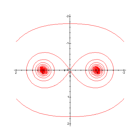 Observe the animation above. Notice that as the two point charges approach each other, they look more and more like a single charge. Eventually the equipotential lines are indistinguishable from those made by a single point charge of magnitude 2Q.