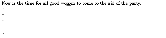 There are several ways to insert text, other than using the i command. For example, the a command inserts text beginning after the current cursor position, instead of on the current cursor position. For example, use the left arrow key to move the cursor between the words ``good'' and ``men''.