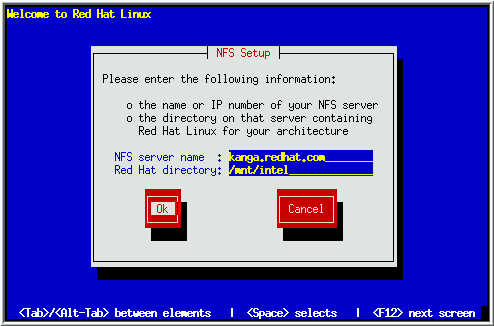 server, and the name of the exported directory that contains the Red Hat Linux