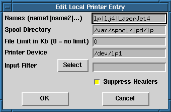 After you choosing the printer type, a dialog requests further information about the print queue. All types of print queues require the following information: