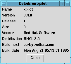 More information on a package can be seen by clicking on the Details pushbutton. A window like the one in figure 74 will then appear. This lists more information about the package being displayed in the main query window. When you select a new package in the query window, the information in the details window will change to reflect your new choice.