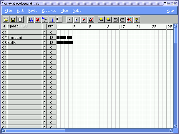 Para cambiar la velocidad de algunas partes de tu canción únicamente, debes hacer un click en Misc-->Edit Tempo en la piano window. Verás que bajo las notas se hace visible un nuevo campo. Aquí puedes establecer con tu ratón los cambios de tempo deseados. (Por alguna razón, a veces tengo que hacer un click en Misc-->Edit Tempo nuevamente después de hacer un click en Aplicar para que funcione correctamente.)