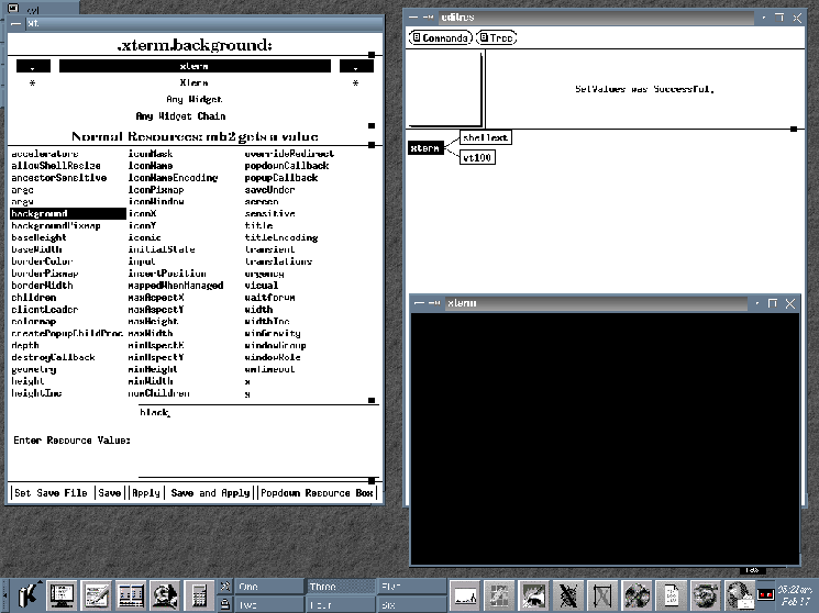 Will define a standard look and feel for all programs that don't otherwise have explicit Xdefault settings. If you're like me and want more flexibility than wild cards allow but, yet can't remember widget hierarchies to save your life... check out editres! editres is a GUI based configuration tool that lwill let you generate extremely custom settings without having to write an .Xdefaults file. Check out a shot of editres in action ! By know you should begin to realize that Xdefaults offers some exciting opportunities to create a common look and feel as well as create some heavily customized clients. Check out what Xdefaults did to this lowly xcalc . For a step by step tutorial on fully exploiting editres' capabilities visit Isolation's X tips page.