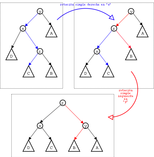 En estos casos se aplica otro tipo de rotación denominado rotación doble la cual, análogamente a la rotación simple, puede ser izquierda o derecha según el caso.