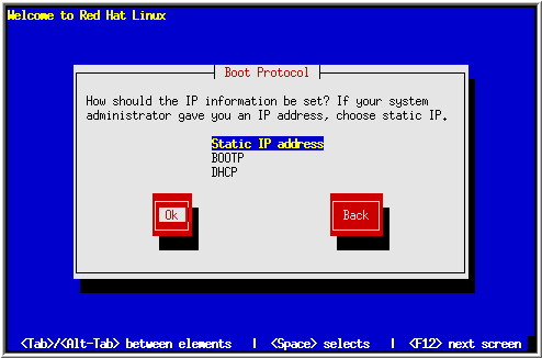 If you choose BOOTP or DHCP, your network configuration will be set automatically, and you can skip the rest of this section.