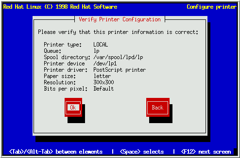 After selecting a printer type, you'll be presented with a dialog box entitled ``Standard Printer Options'' (see Figure 39). Enter the name of the queue and the spool directory you'd like to use, or accept the default information.