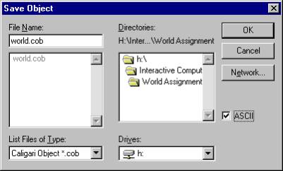 3.) Next, go to the file menu and select save object as. Save the object in a place that you will later be able to find it and be sure that the file extension is .cob. In addition, it is very important to save the file as an ACII file if you are going to use the Exploder plug-in.