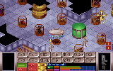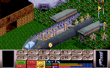 The "Battlescape" is much like Ultima7 (or maybe Ultima8, I haven't played it) whereby you look down at an angle from above at a cutaway 3D scene. The view you get is very clear and looks great. You can select any trooper or tank, look from one of 4 altitudes (eg. to see different levels in buildings), see an overall plan view, or scroll around at will. The beauty is that you can only see line of sight from any trooper, and at night this gets very scary and very atmospheric (throw them flares out! :) The line of sight works through windows, stairwells and seems well implemented. The combat is turn based. Each trooper has so many time units (TU's) to spend on moving, turning, kneeling, getting equipment from his belt, shooting, doing first aid, using artefacts, picking stuff up, or whatever). The 3D view has the bottom quarter of the screen used for buttons and info on the soldier you are about to move; at each side you see what he/she has in each hand, and the icons are all quite intuitive (except picking stuff up, where you have to look at the trooper's inventory which also shows stuff on the ground). When all your troopers have used their TUs (or you are happy with their positions) your turn ends and the aliens move/shoot (with hidden movement). Firing can also occur on a sort of "opportunity" basis; aliens shoot at you if they see you moving in the open, and if your trooper's reactions are good enough he can shoot at an alien during its movement phase, but you need to reserve some TU's for this.