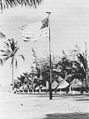 Colonel Flood, the base commander, was in front of his quarters talking to some people when the attack began. He saw a bomb hit near the Wheeler depot area and at first thought someone out on maneuvers must have accidentally dropped it. Immediately afterward, a group of low-flying airplanes sped by, only 50 to 75 feet off the ground. "You could almost hit them with a rock if you had it," thought Flood. When he saw the insignia of the Japanese rising sun, he knew what had happened and hurried down to the flight line. By then, hangars and aircraft were in flames, and a thick pall of black smoke hung over the area.2