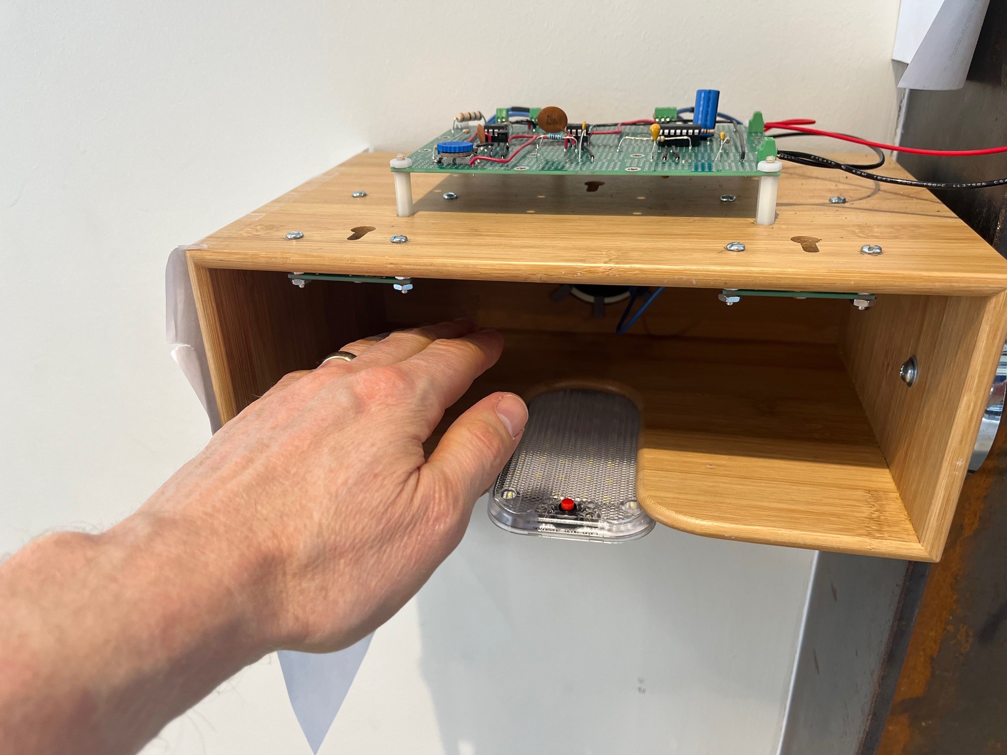 - Optical theremin, a musical instrument playable using one's hands to block light from sensors -- Photo -- Schematic diagram