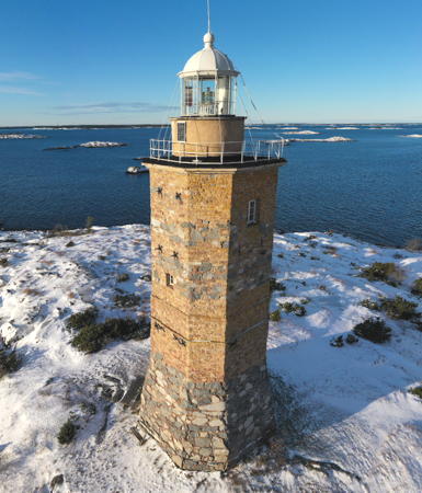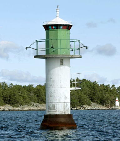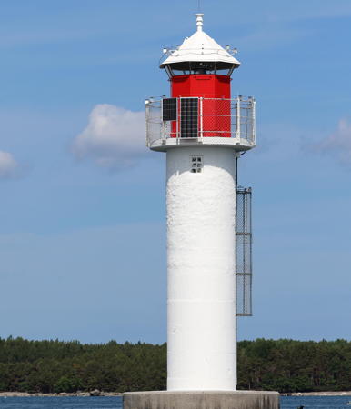 | The nation of Sweden (Sverige in Swedish) is the largest country of northern Europe, occupying the entire west coast of the Baltic Sea. Along with its lengthy coast Sweden has a distinguished lighthouse history and a good record of preserving its historic lights. The Swedish Lighthouse Society (Svenska Fyrsällskapet) works actively for the preservation of the lighthouses. Sweden is divided into 21 counties (län) and the counties are subdivided into townships and municipalities (kommuner). This page covers lighthouses of the southeastern part of Stockholms Län (Stockholm County), from Sandhamn due east of Stockholm to Landsort in the south including the municipalities of Värmdö, Haninge, and Nynäshamn. This area is part of the maze of islands and waterways known as the Stockholm Archipelago. The many channels and passages require a large number of lighthouses but nearly all of them are located offshore or on isolated islands; only a few are easily accessible to the public. Lighthouses of the northern portions of the Stockholm Archipelago are described on the Stockholm Area page. The Swedish word for a lighthouse is fyr. The front light of a range is the nedrefyr (lower light) and the rear light is the övrefyr (upper light). Ö is an island, holme is an islet, skär is a skerry (a tiny island or rocky reef), grund is a shoal or shallow, sund is a strait (often between an island and the mainland), vik is a bay, hav is a sea, udde is a headland, flod is a river, and hamn is a port or harbor. Aids to navigation in Sweden are maintained by the Swedish Maritime Administration (Sjöfartsverket). ARLHS numbers are from the ARLHS World List of Lights. SV numbers are from the Sjöfarsverket light list (Fyrlista) as reported by the Swedish Lighthouse Society. Admiralty numbers are from volume C of the Admiralty List of Lights & Fog Signals. U.S. NGA List numbers are from Publication 116.