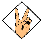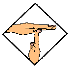 in a "V" position, palm out.