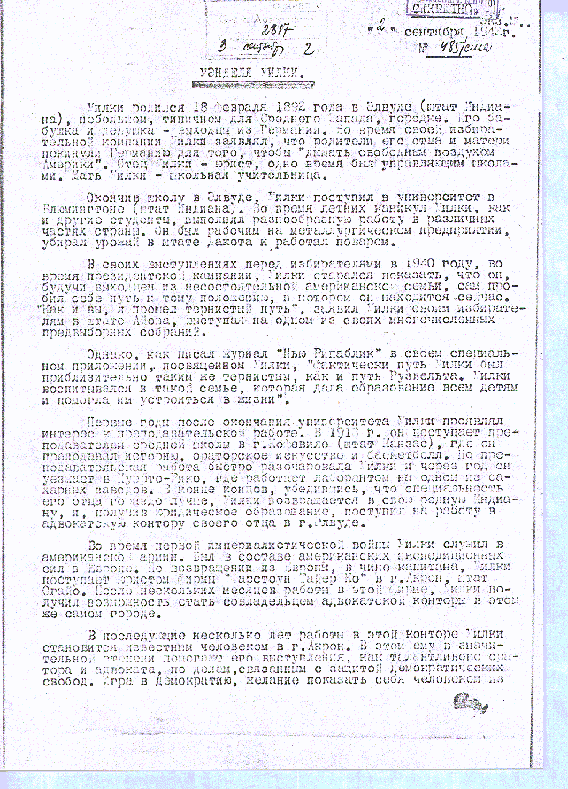 The Testimonial of Wendell Wilkie is available as two images. Click on the icons to view full-size images.