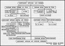 Happily, in the midst of so much planning and the constant air operations which accompanied it, it was not necessary for the air forces to go through the ordeal of an internal reorganization. The structure which had grown out of the establishment of NAAF in February 1943 had been thoroughly tested in the last two months of the Tunisian campaign, in the conquest of Pantelleria, and during the Sicilian campaign and had proved to be satisfactory. Within the Twelfth Air Force the only notable organizational development between 15 May and 30 August was the activation on 6 June of a new bombardment wing, the 2686th Medium Bombardment Wing (Prov.), which on 25 August became the 42d Bombardment Wing. This gave XII Bomber Command three wings with units divided among them in strict accordance with type of aircraft, plus fighter planes to serve as escort: the 5th Bombardment Wing with B-17's, the 42d with B-26's, and the 47th with B-25's.34