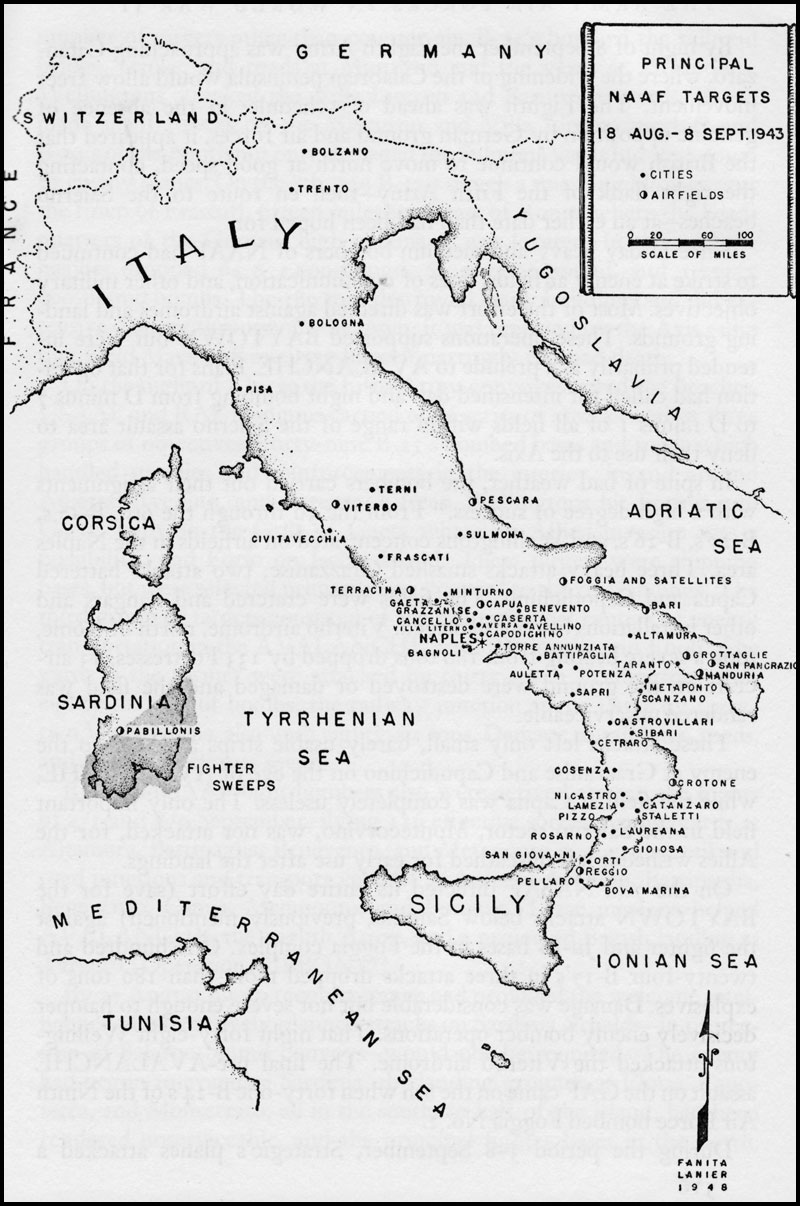 55. NAAF Opn. Sum. 195; NASAF Intops Sum. 44; CM-IN-3181, Spaatz to AGWAR sgd. Eisenhower, 4 Sept. 1943; RAF Med. Review No. 5; NATAF Int/Opsums 146-47; NAAF, ORB, apps.