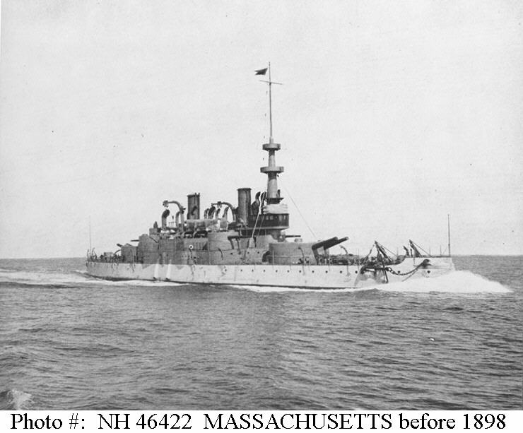 | Photo #: NH 46422 USS Massachusetts (BB-2) Halftone photograph, taken prior to 1898. Copied from the contemporary publication Uncle Sam's Navy. U.S. Naval Historical Center Photograph. Online Image: 60,877 bytes; 740 x 613 pixels |