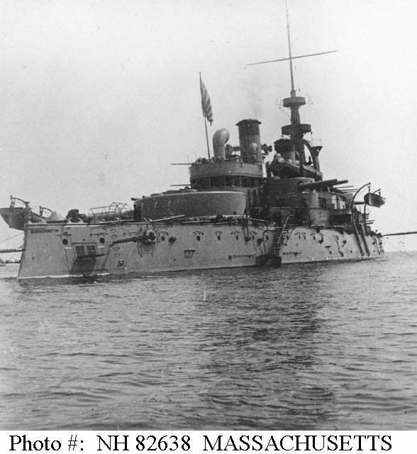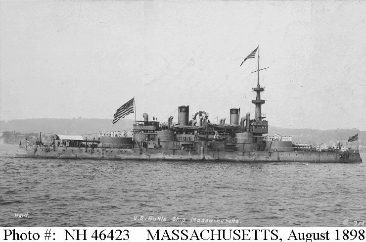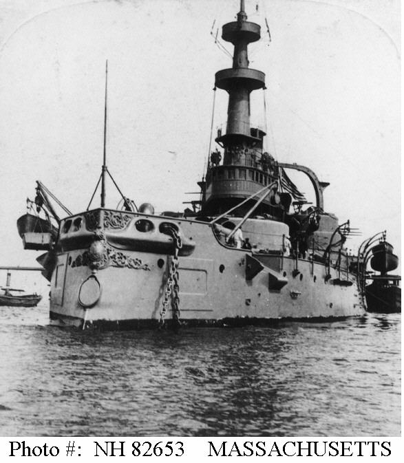 | Photo #: NH 82638 USS Massachusetts (BB-2) Photograph taken in 1898. The original photograph was printed on a stereograph card. Courtesy of Captain George Atkins, USNR(DC), 1975. U.S. Naval Historical Center Photograph. Online Image: 57,159 bytes; 588 x 640 pixels |