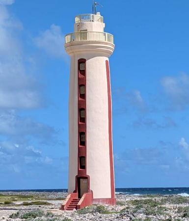 | Bonaire is an island off the coast of Venezuela in the southern Caribbean Sea. The easternmost and least populous of the so-called ABC Islands (Aruba, Bonaire, and Curaçao), it has a permanent population of about 20,000. The island was colonized by the Netherlands in 1636 and it remained under Dutch control throughout the colonial period except for brief occupations by British forces during the Napoleonic Wars. From 1815 to 1954 Bonaire was part of the colony of Curaçao and Dependencies; it then joined the the Netherlands Antilles, a federation of the Dutch territories in the West Indies. The Netherlands Antilles was dissolved in October 2010 and Bonaire now has the status of an overseas municipality of the Netherlands. Bonaire plus Saba and Sint Eustatius in the Leeward Islands are known collectively as the Caribbean Netherlands. Dutch is the official language in Bonaire although a Portuguese-based creole language called Papiamento is commonly spoken. In Dutch vuurtoren is a lighthouse, lichtopstand is a smaller light beacon, baken is an unlit beacon, eiland is an island, baai is a bay, kaap is a cape or headland, and haven is a harbor. The lighthouses are presumably maintained by the Bonaire Port Authority. In 2008 Tideland Signal Corporation installed new MaxLED-200 optics in Bonaire's navigational aids. According to Tideland, all the lights had been out of service for several years prior to these renovations. ARLHS numbers are from the ARLHS World List of Lights. NL numbers are from the official Dutch list. Admiralty numbers are from volume J of the Admiralty List of Lights & Fog Signals. U.S. NGA List numbers are from Publication 110.