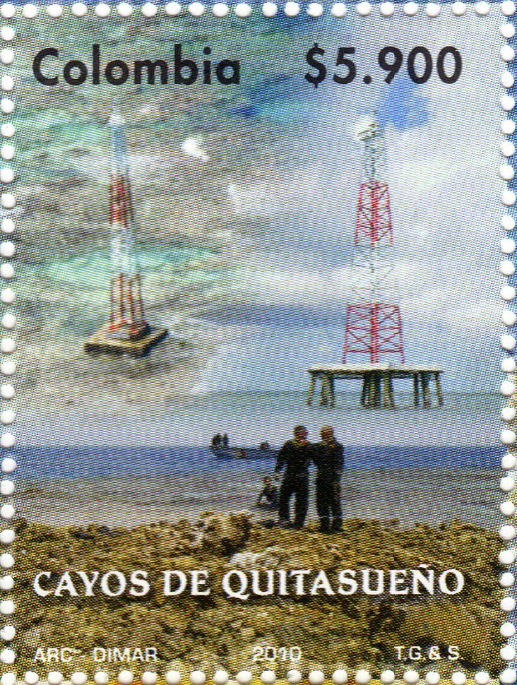 | The Republic of Colombia occupies the northwestern corner of South America. Connected to North America by the Isthmus of Panama, Colombia has coasts facing west on the Pacific Ocean and northwest on the Caribbean Sea. Colombia was colonized by Spain early in the 16th century and was ruled as part of the Viceroyalty of New Granada until the viceroyalty won its independence in a complex struggle in 1810-1819. The former viceroyalty, known as Gran Colombia, fell apart in 1831, creating the nations of Colombia, Venezuela, and Ecuador. Colombia continued to include the area of Panama until that country became independent in 1903. Colombia is divided into 33 departments (departamentos). This page is for lighthouses of Colombia's island territories in the southwestern Caribbean Sea, including the inhabited islands of San Andrés and Providencia and a wide scattering of uninhabited banks, reefs, and cays. The islands are organized as the Department of the Archipiélago de San Andrés, Providencia y Santa Catalina. The islands of San Andrés and Providencia were settled by English sailors (including pirates) and English as well as Spanish is still spoken commonly in the islands. The islands have a population of about 60,000. They were formerly isolated and poorly known but in recent years they have become a regular stop on the Caribbean cruise ship circuit. Nicaragua formerly claimed all these islands but surrendered its claims in 1928 in return for Colombia's recognition of Nicaragua's sovereignty over the Islas del Maíz (Corn Islands) and the Mosquito Coast of the mainland. Later Nicaragua attempted to renounce this agreement but in 2007 the International Court of Justice upheld the 1928 treaty establishing Colombian sovereignty. The Quitasueño, Serranilla, Serrana, Bajo Nuevo, and Roncador Banks were formerly claimed and occupied by the United States. The U.S. gave up its claims to the Quitasueño, Serrana and Roncador Banks in a 1981 treaty with Colombia. The U.S. claims to Serranilla and Bajo Nuevo are technically still in force although the U.S. is unlikely to pursue them. In November 1993 Colombia and Jamaica signed a maritime agreement establishing a zone of joint control around Bajo Nuevo and Serranilla but recognizing Colombian sovereignty over the two reefs themselves. Honduras gave up its former claims to Bajo Nuevo and Serranilla in a 1999 treaty with Columbia. Finally, on 19 November 2012 the International Court of Justice issued a final judgment in the dispute between Colombia and Nicaragua, establishing a maritime boundary between those countries and confirming once again Colombia's sovereignty over the disputed islands. This brings us very close to a complete resolution of the territorial disputes. The Spanish word for a lighthouse is faro. In Colombia this word is used for the larger light towers, while a smaller light is called a baliza (beacon). In Spanish isla is an island, cabo is a cape, punta is a promontory or point of land, péñon is a rock, arrecife is a reef, bahía is a bay, ría is an estuary or inlet, estrecho is a strait, río is a river, and puerto is a port or harbor. Aids to navigation in Colombia are owned by the Autoridad Marítima Colombia and maintained by the Dirección General Marítima (DIMAR). ARLHS numbers are from the ARLHS World List of Lights. DIMAR numbers are from DIMAR's Lista de Luces de la República de Colombia. Admiralty numbers are from volume J of the Admiralty List of Lights & Fog Signals and U.S. NGA numbers are from Publication 110.