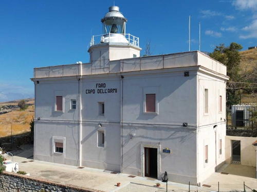 | Most of Italy (officially the Italian Republic, Repubblica Italiana in Italian) occupies a long peninsula in the Mediterranean Sea, with the Adriatic and Ionian Seas on the east and the Ligurian and Tyrrhenian Seas to the west; the country also includes the Mediterranean's two largest islands, Sicily and Sardinia, and many smaller islands. With this geography Italy has a very long coastline reckoned by geographers at about 7600 km (4722 mi). Guarding this coast are many lighthouses; the Directory lists more than 400. Italy is divided into 20 regions (regioni), many of them well known outside the country in their own right. The region of Calabria is the "toe" of the Italian boot, located in the south of the country northeast of the island of Sicily. Basilicata (or Lucania) is the adjoining region to the north, more or less in the "arch" of the boot. Historically Calabria and Basilicata were for many years part of the Kingdom of Naples, ruled by monarchs of the House of Bourbon. In 1816, following the Napoleonic wars, Calabria and Basilicata were included with Campania (Naples) and Sicily in the Bourbon state known as the Kingdom of the Two Sicilies. During Italy's unification the Kingdom of the Two Sicilies was conquered by Sardinia in 1860-61 and incorporated in the new Kingdom of Italy in 1861. Calabria has a long coastline facing the Tyrrhenian Sea to the west, the Ionian Sea to the southeast, and the Gulf of Taranto to the northeast. Basilicata is mostly an inland region, with very short coastlines on the Tyrrhenian Sea and Gulf of Taranto. The Italian word for a lighthouse is faro, plural fari. This name is usually reserved for the larger coastal lights; smaller beacons are called fanali. In Italian isola is an island, isolotto is an islet, secca is a shoal, cabo is a cape, punta is a point of land, baia is a bay, stretto is a strait, fiume is a river, and porto is a harbor. Aids to navigation in Italy are operated and maintained by the Italian Navy's Servizio dei Fari e del Segnalamento Marittimo (Lighthouse and Maritime Signal Service). Lighthouse properties are naval reservations, generally fenced and closed to the public. ARLHS numbers are from the ARLHS World List of Lights. EF numbers are from the Italian Navy's light list, Elenco Fari. Admiralty numbers are from volume E of the Admiralty List of Lights & Fog Signals. U.S. NGA List numbers are from Publication 113.