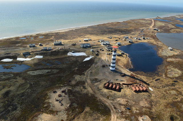 | Russia (Россия, Rossiya in Russian) is by far the world's largest country, spanning a little over 150° in longitude. It is organized as the Russian Federation (Rossiyskaya Federatsiya) with members known as federal subjects (sub'yekty federatsii). Russia is primarily a continental nation but it has important coastlines on the Baltic, Black, and Caspian Seas and very long coastlines on the Arctic Ocean and North Pacific Ocean. To guard these coasts it operates hundreds of lighthouses, many of them historic. The northwestern corner of Russia lies on the Barents Sea, an arm of the Arctic Ocean. The broad, eastward-pointing Kola Peninsula (Kolskiy Poluostrov) separates the Barents Sea from the nearly-enclosed White Sea, which extends southward more than 500 km (300 mi). Arkhangel'sk, located at the southeasternmost point of the White Sea, became Russia's chief port under Ivan the Terrible in the mid 1500s and there has been a lively trade between Western Europe and Arkhangel'sk through these northern waters for almost 500 years. This page lists includes lighthouses on the east side of the White Sea in the northern part of the vast Arkhangel'sk Oblast, one of the members of the Russian Federation. The Russian word for a lighthouse is mayak (маяк); ostrov is an island, mys is a cape, bukhta or guba is a bay, zaliv is a larger bay or gulf, proliv is a strait, reka is a river, and gavan' is a harbor. Russian lighthouses are owned by the Russian Navy and maintained by the Navy's Office of Navigation and Oceanography (Управление навигации и океанографии). ARLHS numbers are from the ARLHS World List of Lights. Russian light list (RU) numbers are from Russian Navy Publication 2105, as reported by the Admiralty. Admiralty numbers are from volume L of the Admiralty List of Lights & Fog Signals. U.S. NGA numbers are from Publication 115. The Russian light list, Огни и знаки (Lights and Signs), is not available online.