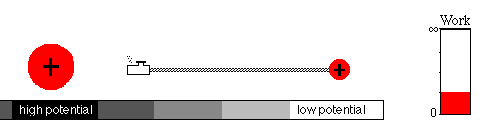 When a piece of wire is connected between two terminals of a battery, electric current flows from the positive to the negative terminal. That is, the positive charges move from the region of higher potential to the region of lower potential. A simpler situation is shown below in which a positive charge q is repelled by another positive charge Q.