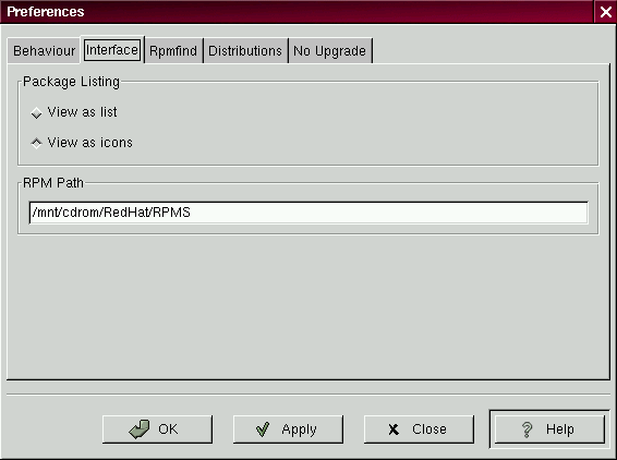 Debajo de esas opciones, usted puede especificar el camino en el que GnoRPM puede encontrar nuevos RPMs en su sistema. Cuando esté usando su CD-ROM de Red Hat Linux, éste será probablemente